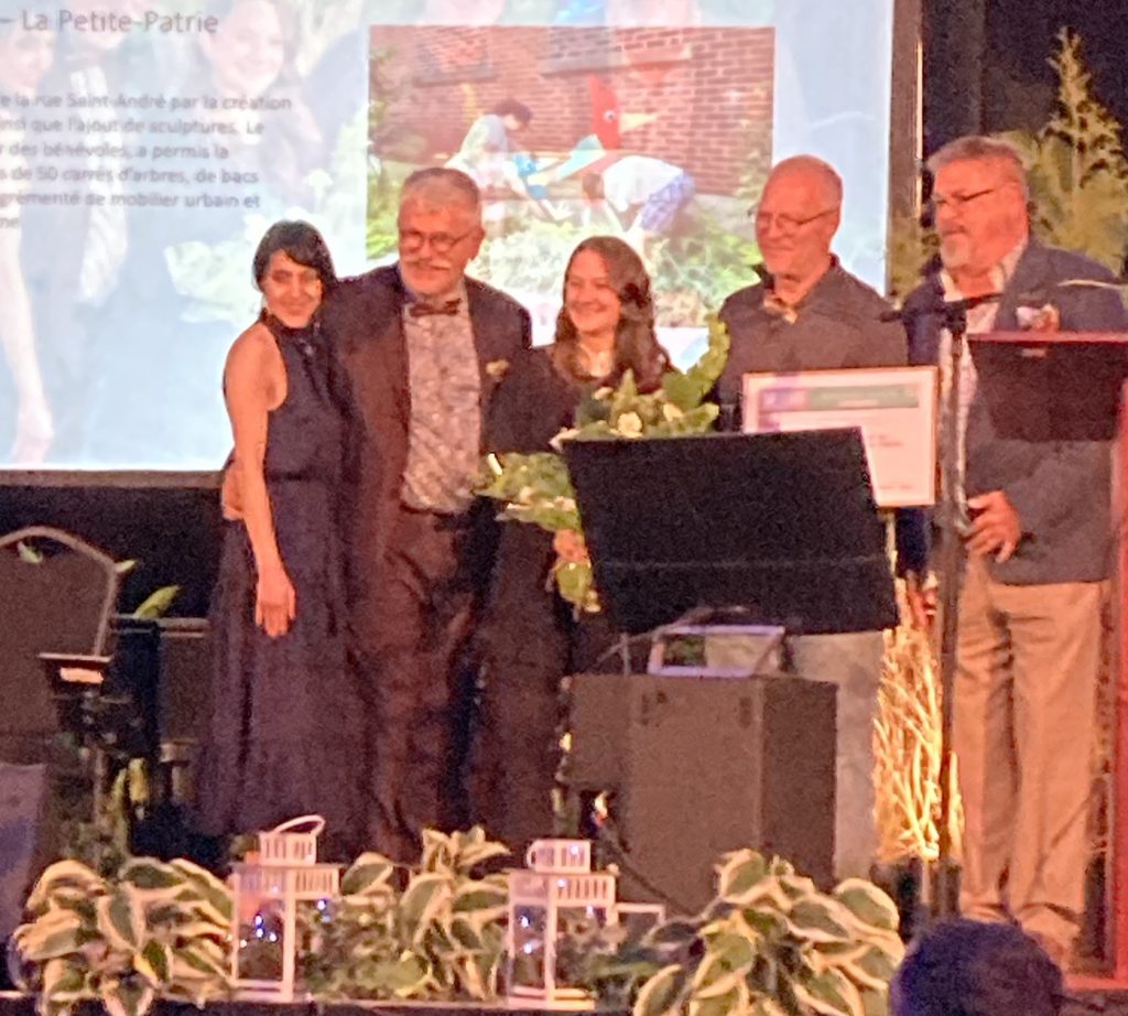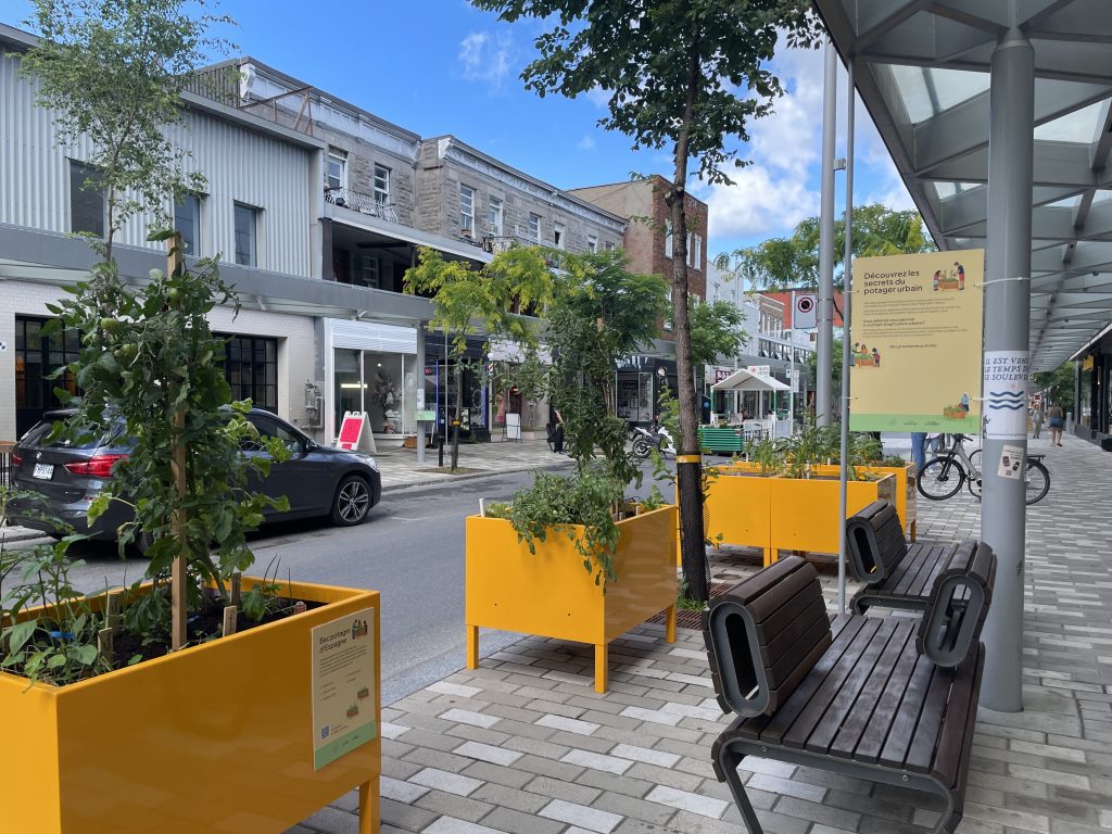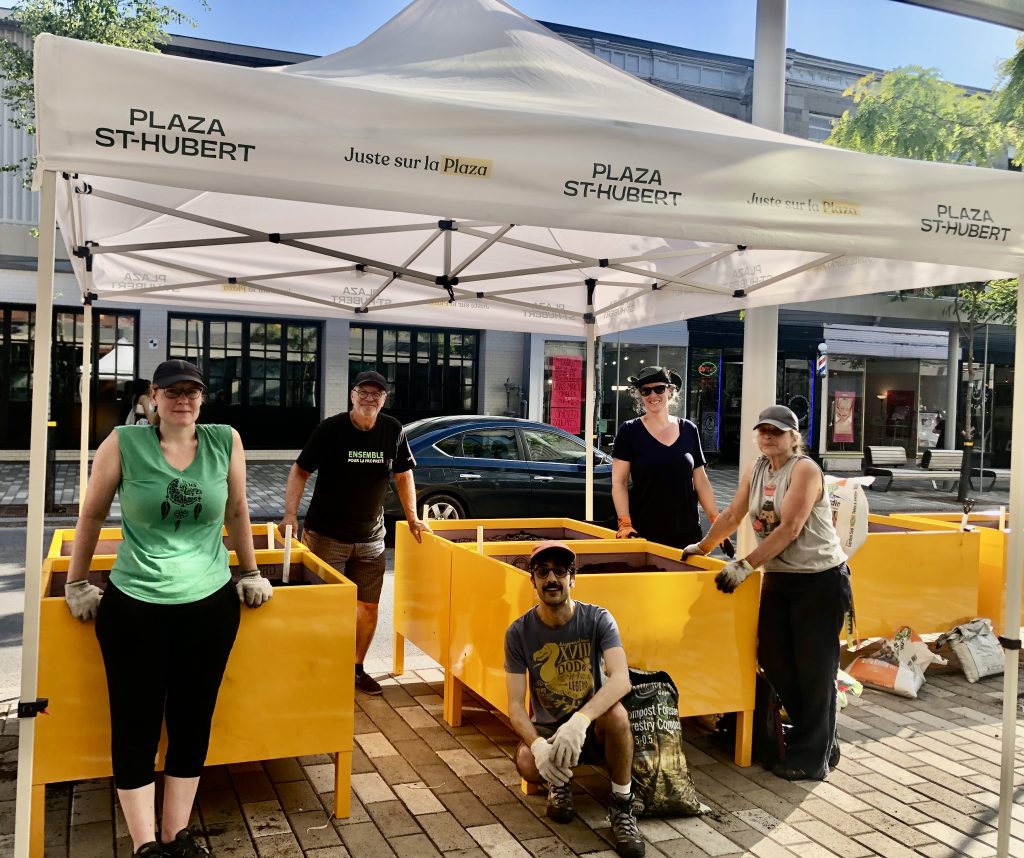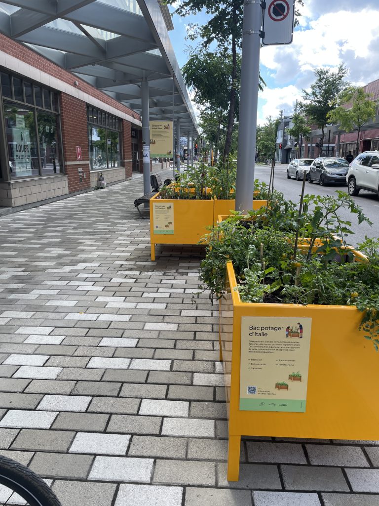 Ce projet de l’été 2024 a été un élément important de la piétonnisation de la Plaza St-Hubert et avait fait l’objet de beaucoup de commentaires positifs, souvent par les voisins et passants qui se cueillaient des tomates, fraises, feuilles de basilic, etc. D’ailleurs ce projet à été finaliste du prix d’agriculture urbaine de Fleurons du Québec en 2024.